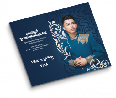 កាតរចនាពិសេសជាមួយវត្តមានសិល្បករខ្មែរដំបូងបង្អស់នៅលើកាតអន្ដរជាតិ បើកឲ្យអតិថិជនដែលស្រឡាញ់ពេញចិត្ត ធ្វើការកុម្មង់ សម្រាប់ប្រើប្រាស់ ក្នុងការទូទាត់ក្រៅប្រទេសយ៉ាងងាយស្រួល ជាមួយនិមិត្តរូប និងក្បាច់រចនាពិសេសដោយឡែក។