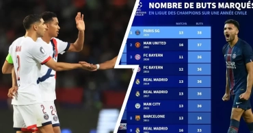 វេបសាយ Transfermarkt បានចងក្រងស្ថិតិនៃក្លិបដែលបានស៊ុតបញ្ចូលទីច្រើនជាងគេក្នុងឆ្នាំប្រតិទិននៅ Champions League ហើយ PSG ជាក្រុមដែលឈរកំពូលតារាង។