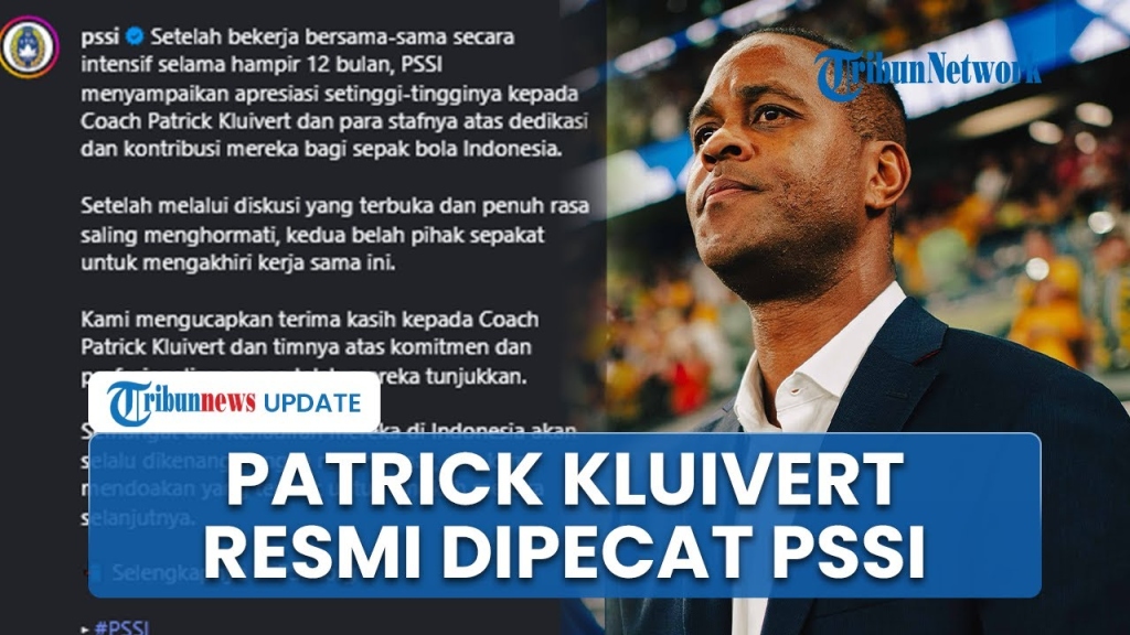 ជម្រើសជាតិឥណ្ឌូណេស៊ីបានប្រកាសពីការចែកផ្លូវគ្នាជាមួយអតីតកីឡាករអន្តរជាតិហូឡង់ លោក Patrick Kluivert ដែលកាន់តំណែងជាគ្រូបង្វឹកក្រុមបាល់ទាត់ជម្រើសជាតិរបស់ពួកគេ។
