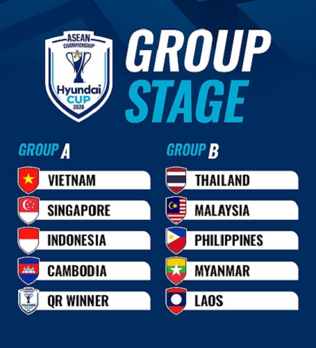 ក្រុមជម្រើសជាតិកម្ពុជានឹងត្រូវជួបក្រុមការពារតំណែងជើងឯកវៀតណាម ក្នុងវគ្គចែកពូលនៃពានរង្វាន់ ASEAN Hyundai Cup™ 2026 ខណៈដែលក្រុមជើងឯកប្រាំពីរសម័យកាលថៃនឹងត្រូវប្រកួតជាមួយក្រុមម៉ាឡេស៊ី បន្ទាប់ពីការចាប់ឆ្នោតជាផ្លូវការនៅទីក្រុងហ្សាការតានៅថ្ងៃព្រហស្បតិ៍សម្រាប់ការប្រកួតជើងឯកអាស៊ានខួបលើកទី 30។
